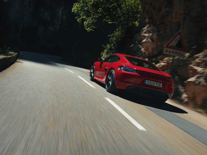 De 718 Cayman GTS 4.0 en 718 Boxster GTS 4.0 sprinten in 4,5 seconden naar 100 km/u; de topsnelheid bedraagt 293 km/u. Dankzij het standaard Porsche Active Suspension Management (PASM), een 20 millimeter lager sportonderstel en Porsche Torque Vectoring (PTV) met een mechanisch sperdifferentieel achter bereikt de nieuwe generatie 718 GTS een opmerkelijke balans tussen dynamische handling en alledaags comfort. Het standaard Sport Chrono Pakket met verbeterde Porsche Track Precision app benadrukt het sportieve karakter van de sportwagens met middenmotor. De nieuwe 718 GTS 4.0-modellen springen in het oog door hun design. In goede GTS-traditie zijn zwarte contrasterende designelementen en een donker alcantara-interieur typische ingrediënten van de nieuwe modellen.