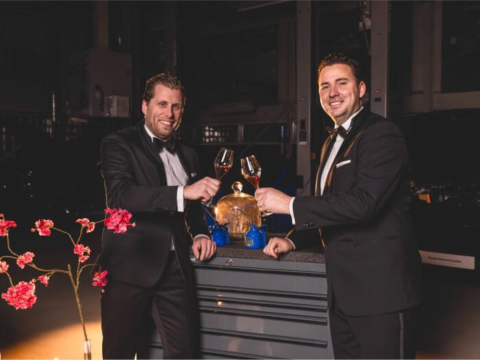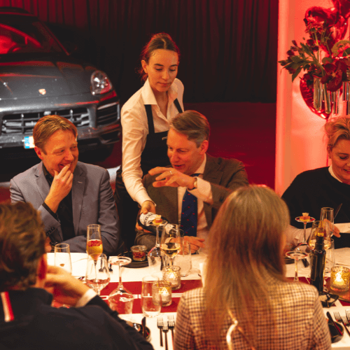 Via een shuttle service van Porsche Centrum Leusden werden de klanten naar de geheime locatie gebracht. Hier werden ze welkom geheten met een Valentijnscocktail en kwam ieder zijn en haar eigen Porsche weer tegen. De Porsches waren in een gezellige kring om de dinertafel geparkeerd, waardoor iedereen met volledig zicht op hun ‘grote liefde’ van het diner kon genieten.