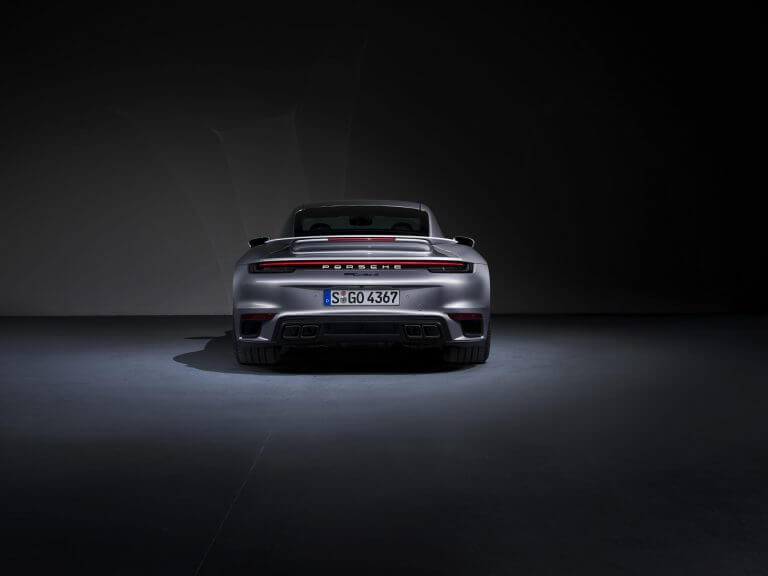 De nieuwe neus met bredere luchtinlaten heeft een karakteristieke Turbo-uitstraling. De nieuw ontworpen uitschuifbare voorspoiler en de grotere achtervleugel zorgen voor vijftien procent meer downforce. De achterzijde heeft rechthoekige eindpijpen in hoogglans zwart, die onmiskenbaar bij de Turbo horen.