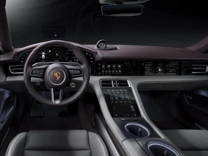 Vanbinnen wordt deze Taycan standaard geleverd met comfortstoelen die in acht richtingen elektrisch verstelbaar zijn. De auto heeft twee bagageruimten, voorin met een inhoud van 84 liter en achterin met een volume van 407 liter. De Taycan is de eerste Porsche waarin geen leer wordt toegepast. De bekleding is gemaakt van een innovatief gerecycled materiaal dat de duurzaamheid van de elektrische sportwagen benadrukt.