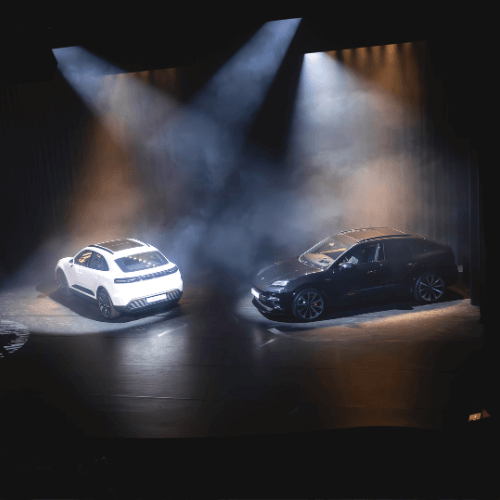 Omgeven door een spectaculaire show mocht de volledig elektrische Porsche Macan zich daarna in vol ornaat tonen. Met de overdracht van de sleutels aan de eerste klant bij de entree, was de onthulling compleet. Buiten konden de gasten aan de hand van diverse generaties van de Porsche Macan de ontwikkeling zien die het model doormaakte. Binnen op het podium, omlijst door hoogtepunten uit de tentoonstellingscollectie, stonden de nieuwe volledig elektrische Macan 4 en elektrische Macan Turbo.