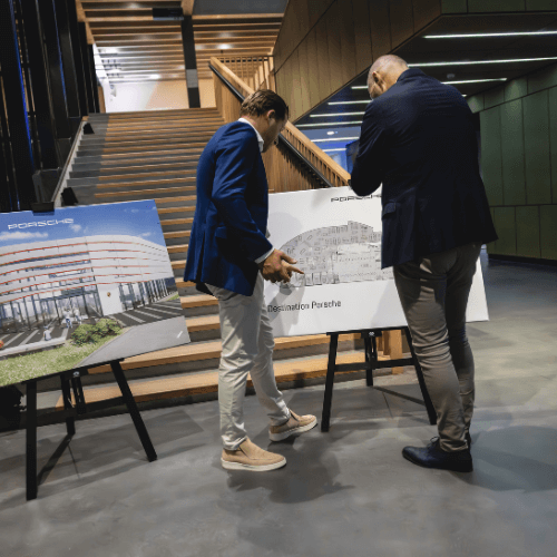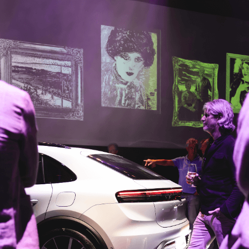 Voor de première van de volledig elektrische Porsche Macan was een passende locatie gekozen: Museum Singer in Laren. In het hart van onze regio verwelkomden we onze trouwe klanten en nieuwe geïnteresseerden. Omgeven door prachtige kunst, kwam het vooruitstrevende design van de volledig elektrische Macan goed tot zijn recht. Al ging het doek natuurlijk nog niet gelijk van de auto.
