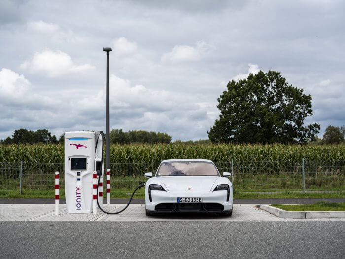 Door de architectuur van de elektrische aandrijving is het batterijpakket van de Taycan bij een 800V gelijkstroom-snellader (DC) in slechts vijf minuten voldoende op te laden voor honderd kilometer extra actieradius, gemeten volgens WLTP. Dat is vooral handig als je bijna op de plaats van bestemming bent. De laadtijd van vijf naar tachtig procent bedraagt onder ideale omstandigheden bij een snellader van IONITY maar 22,5 minuten. Porsche heeft zo de achilleshiel van de elektrische auto getackeld.
