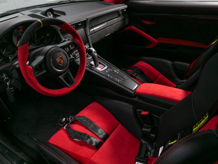 De Porsche 991 GT2 RS uit 2018 die we als Porsche Approved occasion in Leusden hebben staan mag je gerust een witte raaf noemen. Deze RS heeft een Clubsport-pakket – rolkooi, voorbereiding voor noodstroomvoorziening accu; rode 6-puntsgordel voor de bestuurder en een brandblusser. Z’n kleur GT-zilver metallic combineert prachtig met het zwart-rode volleder/alcantara interieur, vind ik. Dit exemplaar is nog unieker dan elke andere GT2 RS al is. Hij heeft namelijk maar 600 kilometer op de teller staan en heeft geen circuitverleden. De GT2 RS staat klaar voor een liefhebber die dit kanon op waarde weet te schatten en die zijn kracht weet te beteugelen. Ik benijd hem nu al.”